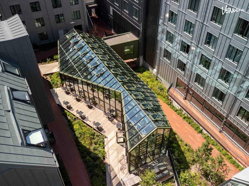 Med sin stilrena design och centrala läge är Atrium idealiskt för företag som söker en inspirerande plats för möten, workshops eller mingel. Lokalen kan enkelt anpassas för olika typer av upplägg, från presentationer och live-streams till interaktiva övningar. Det är tillåtet att ta med egen mat och dryck.