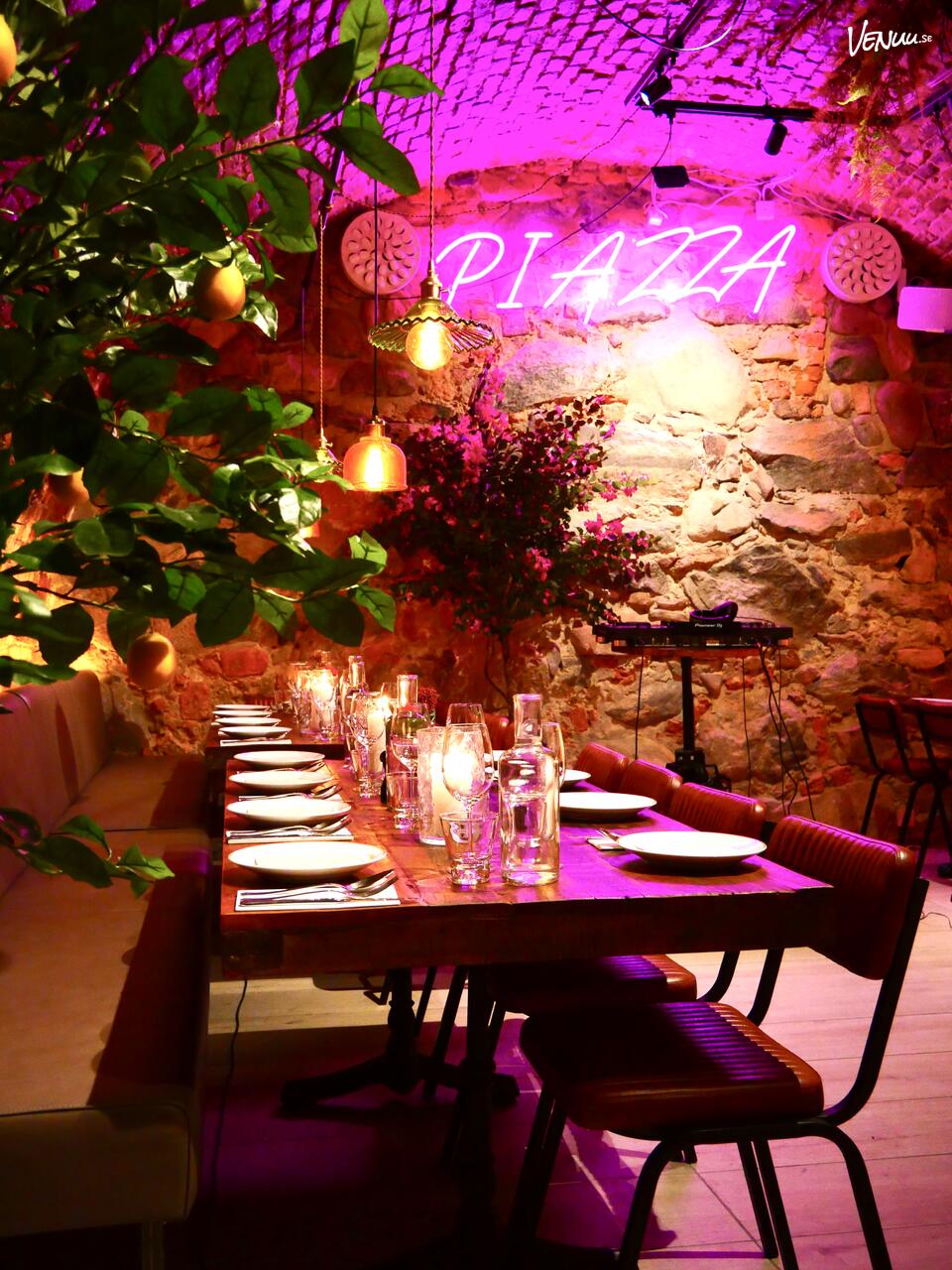 Under vackra tegelvalv i Gamla Stan möts historisk charm och modern festkänsla i Café Piazzas unika lokaler. Med egen ingång och musikanläggning får ni total frihet att skapa allt från en intim bröllopsmiddag till ett livligt dansgolv under neonskyltarnas sken.